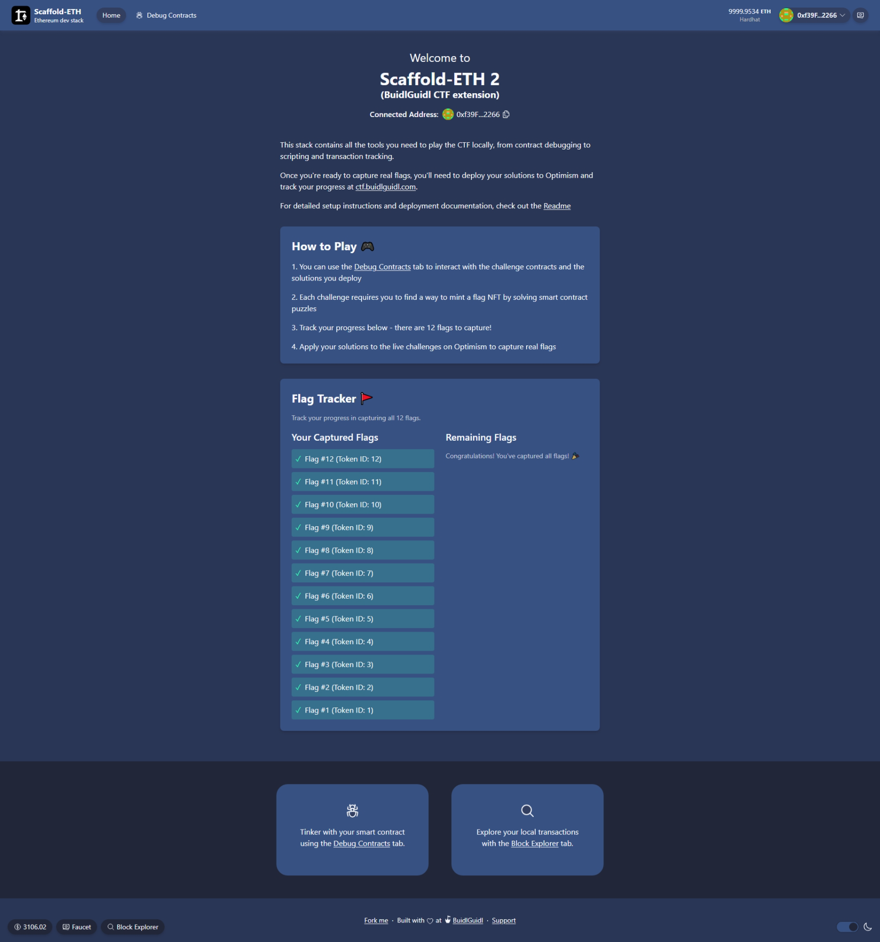 Vậy là hành trình chinh phục 12 thử thách của BuidlGuidl CTF đã hoàn thành. Đây không chỉ đơn thuần là một chuỗi bài tập giải đố, mà là một khóa huấn luyện cấp tốc về tư duy của một hacker và một auditor bảo mật. Mỗi challenge là một bài học thực tế, buộc chúng ta phải đào sâu vào cách EVM hoạt động.